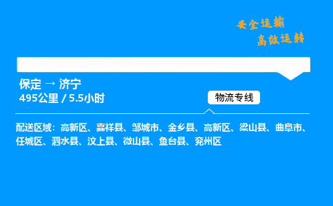 保定到济宁物流公司全程约495公里公里,专线运输用时大约5.5小时小时,可运输直达高新区、嘉祥县、邹城市、金乡县、高新区、梁山县、曲阜市、任城区、泗水县、汶上县、微山县、鱼台县、兖州区,凯冉物流可承接:整车运输、零担运输、大件运输、轿车托运、危险品运输、机械设备运输、汽车配件运输、食品饮料运输、办公家具运输、电子电器运输、行李搬家物流运输、电动车摩托车托运等货物的物流业务;全程直达,无需中转,保定到济宁的专线能实现每天发车,可上门提货,送货到点,为工厂、贸易商、批发商、电商以及个人等货主提供货物安全有保障的运输服务,那保定到济宁这条快运专线运费怎么算,下面我们来详细介绍下。