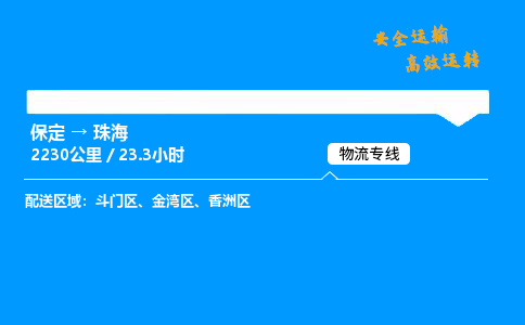 保定到珠海物流公司全程约2230公里公里,专线运输用时大约23.3小时小时,可运输直达斗门区、金湾区、香洲区,凯冉物流可承接:整车运输、零担运输、大件运输、轿车托运、危险品运输、机械设备运输、汽车配件运输、食品饮料运输、办公家具运输、电子电器运输、行李搬家物流运输、电动车摩托车托运等货物的物流业务;全程直达,无需中转,保定到珠海的专线能实现每天发车,可上门提货,送货到点,为工厂、贸易商、批发商、电商以及个人等货主提供货物安全有保障的运输服务,那保定到珠海这条快运专线运费怎么算,下面我们来详细介绍下。